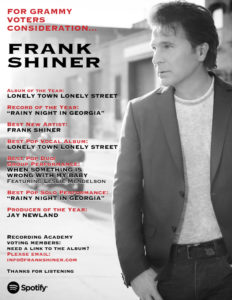 Without question, popular performer Frank Shiner (winner of two L.A. Music Critic Awards) has demonstrated his finely-honed ability to put his own unique stamp on classic material previously recorded by others via his sophomore album, LONELY TOWN, LONELY STREET. Turning in stellar performances on songs popularized by such artists as The Rascals, Brook Benton, Sam & Dave, Elton John, Bill Withers and Donny Hathaway, Frank has created a tour-de-force collection of twelve songs from the songbooks of legendary writers such as Randy Newman, Doc Pomus, Isaac Hayes & David Porter and Tony Joe White among others.